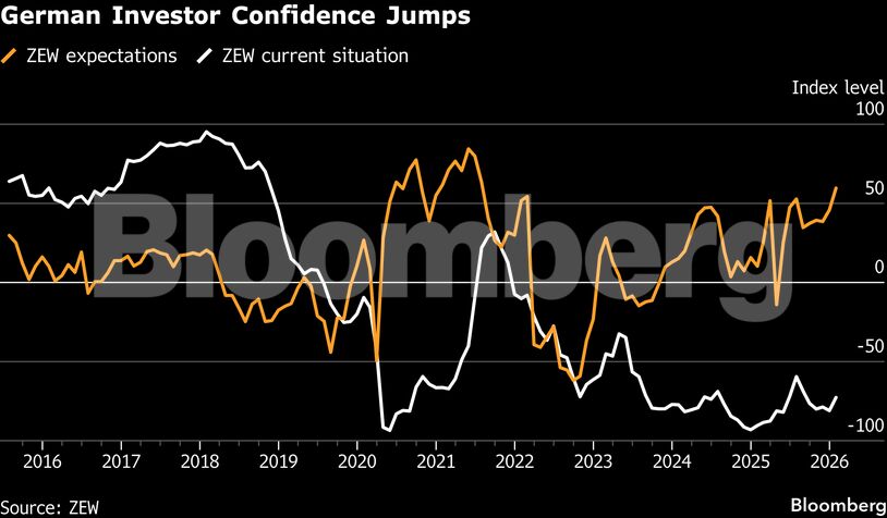 Ο δείκτης προσδοκιών του ινστιτούτου ZEW αυξήθηκε στις 59,6 μονάδες τον Ιανουάριο από 45,8 τον προηγούμενο μήνα, ξεπερνώντας αισθητά τις εκτιμήσεις των αναλυτών, που έκαναν λόγο για άνοδο έως τις 50 μονάδες. Παράλληλα, σύμφωνα με το Bloomberg, ο δείκτης τρεχουσών συνθηκών βελτιώθηκε περισσότερο απ’ ό,τι αναμενόταν.