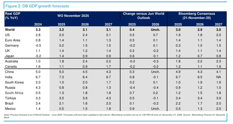 Στο μακροοικονομικό επίπεδο, η παγκόσμια ανάπτυξη αναμένεται να είναι παρόμοια με το 2024 και το 2025, όμως οι πηγές αυτής της ανάπτυξης μετατοπίζονται. Οι ΗΠΑ εκτιμάται ότι θα ανοίξουν το βήμα τους εκ νέου, καθώς η αβεβαιότητα γύρω από το εμπόριο περιορίζεται, τα εισοδήματα των νοικοκυριών ευνοούνται από τις μειώσεις φόρων και η ανάπτυξη διευρύνεται και πέραν των κεφαλαιουχικών δαπανών που σχετίζονται με την τεχνητή νοημοσύνη.