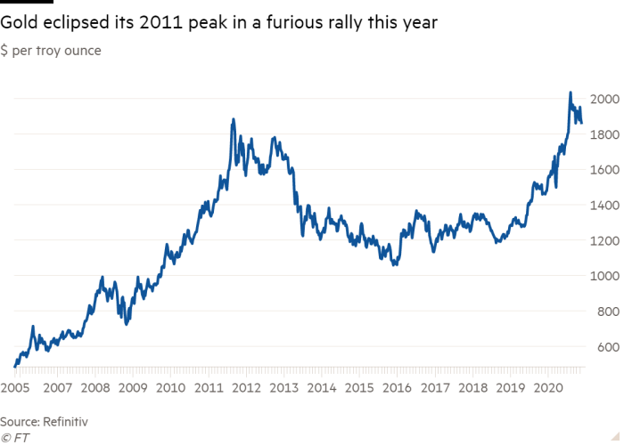 Οι τιμές του χρυσού έχουν ήδη καταγράψει πτώση περίπου 10% από την κορυφή του Αυγούστου όταν και είχαν ξεπεράσει τα 2.000 δολάρια ανά ουγκιά troy, καθώς η επανήλθε σταδιακά η εμπιστοσύνη στις αγορές μετοχών. Αυτό θα μπορούσε να είναι η αρχή μιας συνεχιζόμενης διολίσθησης του μετάλλου, μετά την ανακοίνωση των δυο επιτυχημένων δοκιμών εμβολίων κατά της Covid-19 τον Νοέμβριο.