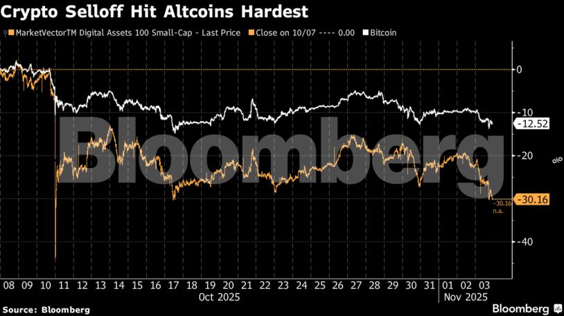 Τα κρυπτονομίσματα παραμένουν υπό πίεση με το bitcoin να διαπραγματεύεται κάτω από τα 107.000 δολάρια και τα altcoins να αντιμετωπίζουν ακόμη μεγαλύτερες δυσκολίες, τρεις εβδομάδες μετά από ένα ιστορικό γεγονός εκκαθάρισης που συγκλόνισε την κατηγορία των ψηφιακών περιουσιακών στοιχείων και εξάλειψε δισεκατομμύρια δολάρια σε μοχλευμένες θέσεις.