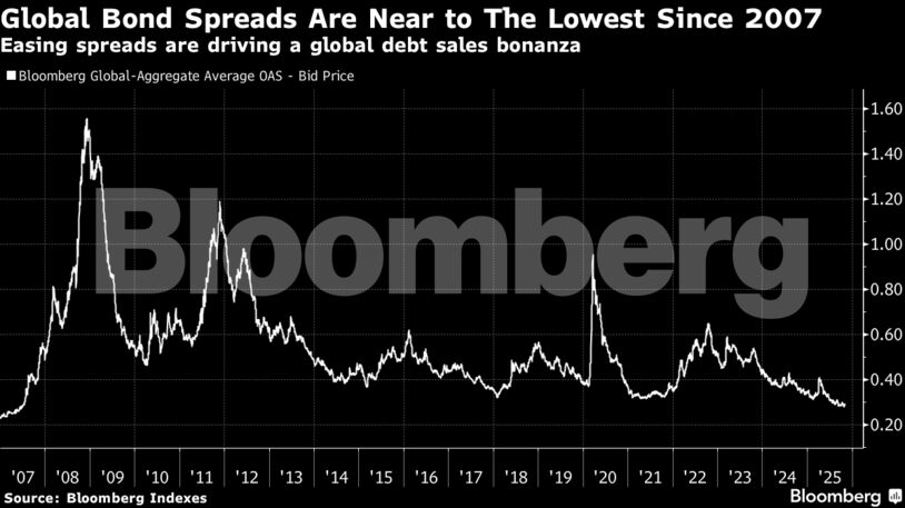 Η δυναμική αυτή έρχεται σε μια περίοδο που ο δείκτης του παγκόσμιου πιστωτικού κινδύνου κυμαίνεται κοντά στο χαμηλότερο επίπεδο από το 2007, αν και η πληθώρα των προσφορών αρχίζει να διευρύνει τα περιθώρια των εταιρικών ομολόγων. Ωστόσο, η ζήτηση υπερκαλύπτει το χρέος που πωλείται, με τις συνολικές αποδόσεις των επενδυτών για το έτος να κυμαίνονται σε ποσοστό άνω του 7% — το καλύτερο αποτέλεσμα των τελευταίων πέντε ετών.