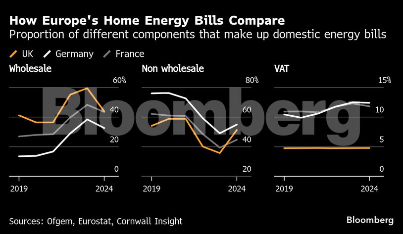 Ο Andrew Sissons του ερευνητικού φορέα Nesta εξηγεί πως οι πολιτικές επιβαρύνσεις καλύπτουν σχεδόν το 20% των τιμολογίων ρεύματος, ενώ στα τιμολόγια φυσικού αερίου αποτελούν μόλις 7%. Αυτή η ανισορροπία καθιστά την ηλεκτρική ενέργεια αδικαιολόγητα ακριβότερη, αποθαρρύνοντας τη μετάβαση σε καθαρή θέρμανση και ηλεκτροκίνηση.