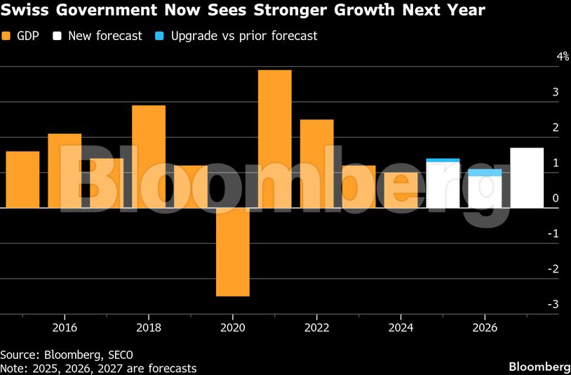 Η Ελβετία αναθεώρησε προς τα πάνω τις προβλέψεις της για την οικονομική ανάπτυξη το επόμενο έτος, στον απόηχο της εμπορικής συμφωνίας με τις ΗΠΑ, ενώ παράλληλα μείωσε τις εκτιμήσεις για τον πληθωρισμό, μετά την απόφαση της κεντρικής τράπεζας να μην προχωρήσει σε περαιτέρω χαλάρωση της νομισματικής πολιτικής.