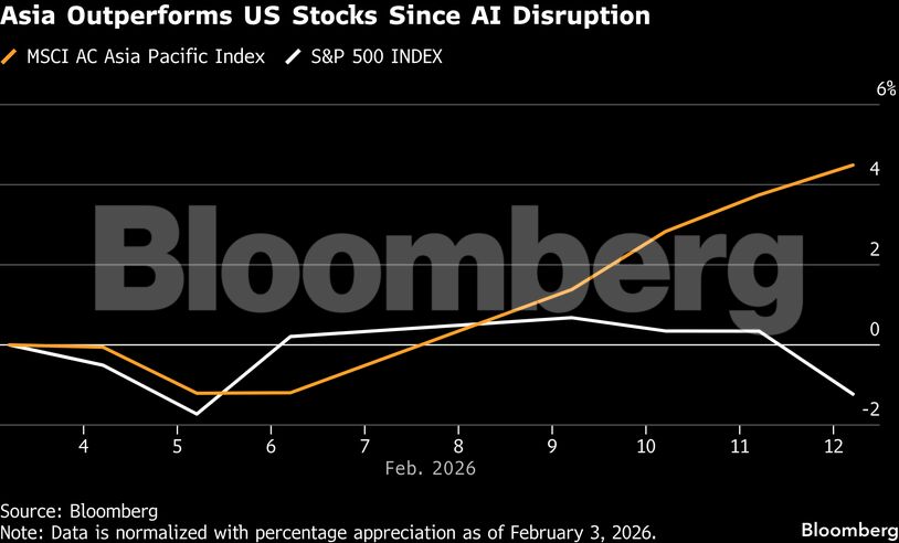 Οι φόβοι της Wall Street για διαταραχές που προκαλούνται από την τεχνητή νοημοσύνη μετατρέπονται σε ευλογία για τις ασιατικές μετοχές, τροφοδοτώντας τη ζήτηση για τους κορυφαίους κατασκευαστές μικροτσίπ της περιοχής που κυριαρχούν στην αλυσίδα εφοδιασμού του κλάδου.