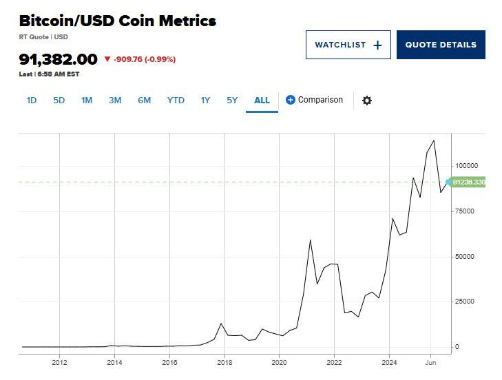 Σύμφωνα με την Coinmetrics, την Πέμπτη το Βitcoin διαπραγματευόταν σε τιμή άνω των 93.000 δολαρίων, σημειώνοντας πτώση περίπου 26% από το ιστορικό υψηλό του.