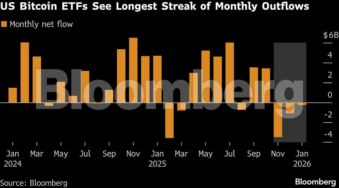 Τα 12 spot Bitcoin ETF που είναι εισηγμένα στις ΗΠΑ καταγράφουν τρεις συνεχόμενους μήνες καθαρών εκροών. Αν η τάση συνεχιστεί έως το τέλος Ιανουαρίου, θα πρόκειται για το μεγαλύτερο σε διάρκεια κύμα εκροών από την έναρξη λειτουργίας τους το 2024. Κατά το ίδιο διάστημα, περίπου 4,8 δισ. δολάρια έχουν αποσυρθεί από τα προϊόντα αυτά, σύμφωνα με στοιχεία που συγκέντρωσε το Bloomberg.