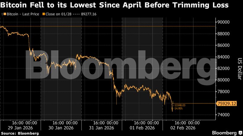 Το Bitcoin υποχώρησε σε χαμηλό δεκαμήνου, πιεζόμενο από τη γενικευμένη αναταραχή στις αγορές, τη βουτιά στον χρυσό και τις ανησυχίες για πιο «σφιχτή» νομισματική πολιτική στις ΗΠΑ