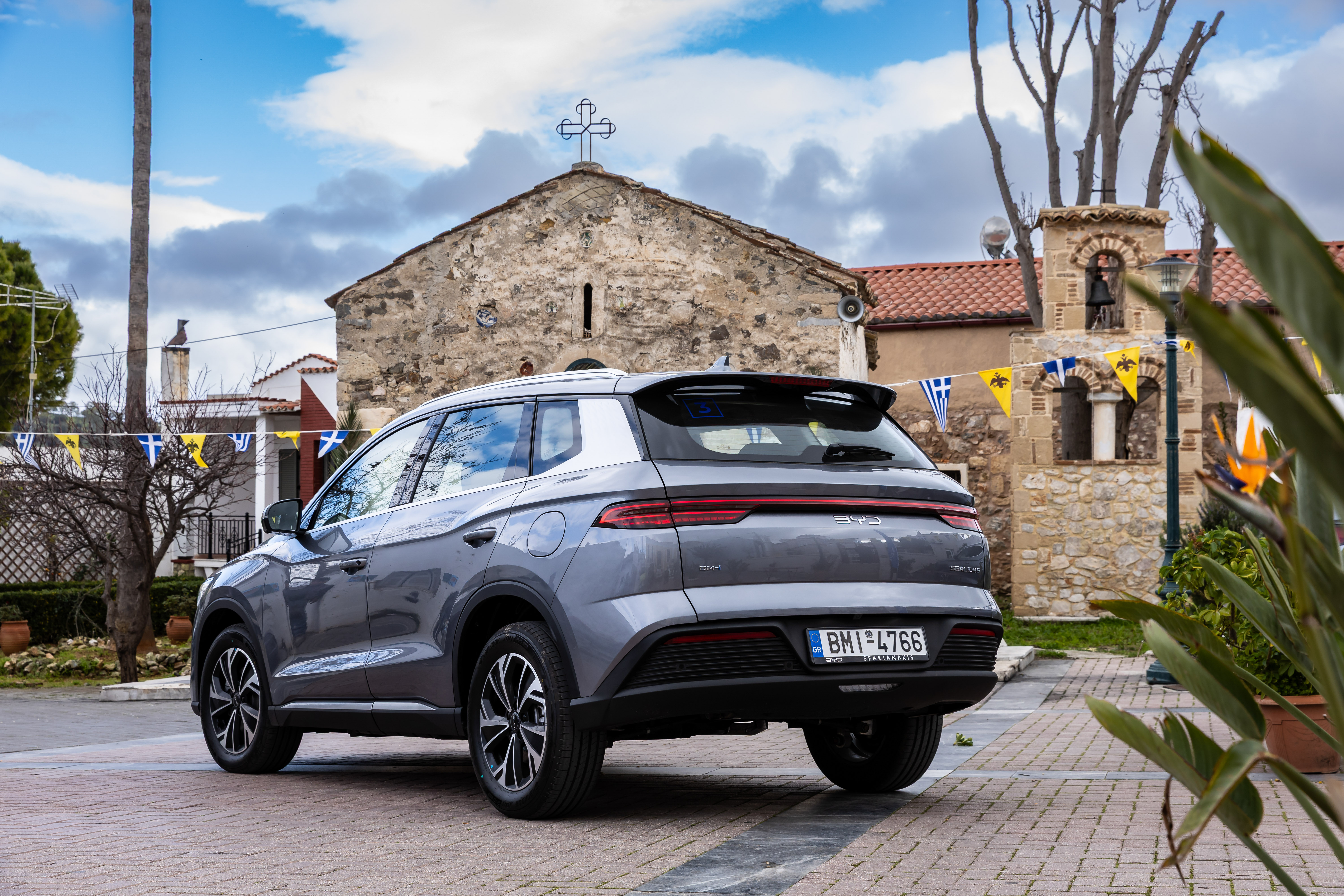Στο εσωτερικό, η εικόνα είναι καθαρή και σύγχρονη με ψηφιακό πίνακα οργάνων 8,8 ιντσών και οθόνη αφής 12,8 ιντσών με το infotainment της BYD, εύκολη συνδεσιμότητα με Apple και Android, καθώς και πρακτικές λεπτομέρειες για την καθημερινότητα. Υπάρχουν θύρες USB εμπρός και πίσω, ενώ στην έκδοση Design συναντάμε και ασύρματη φόρτιση.