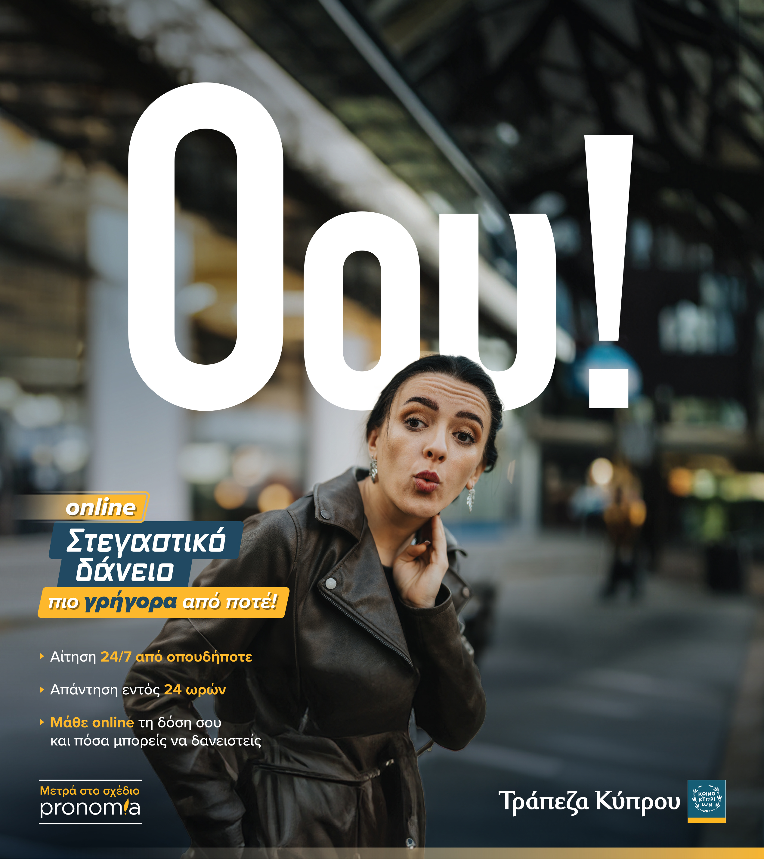 Η Τράπεζα Κύπρου και το online Στεγαστικό Δάνειο μεταμορφώνουν την εμπειρία απόκτησης στέγης – γρήγορα, απλά και με σεβασμό στις δικές σου ανάγκες. Ξεκίνησε σήμερα το ταξίδι προς το δικό σου σπίτι, 100% ψηφιακά, με την αξιοπιστία που σου αξίζει. Όλες οι λεπτομέρειες, τα κριτήρια και η online αίτηση σε περιμένουν στην επίσημη ιστοσελίδα της Τράπεζας Κύπρου.