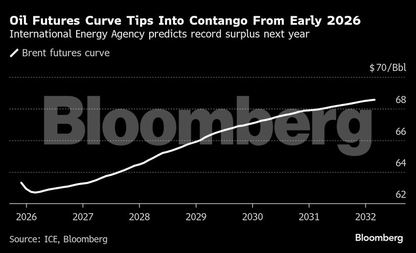 Το timespread μεταξύ των δύο πλησιέστερων συμβολαίων Δεκεμβρίου στο Brent γύρισε σε contango, ένδειξη ότι η άφθονη βραχυπρόθεσμη προσφορά πιέζει τις άμεσες τιμές σε σχέση με τις μεταγενέστερες.