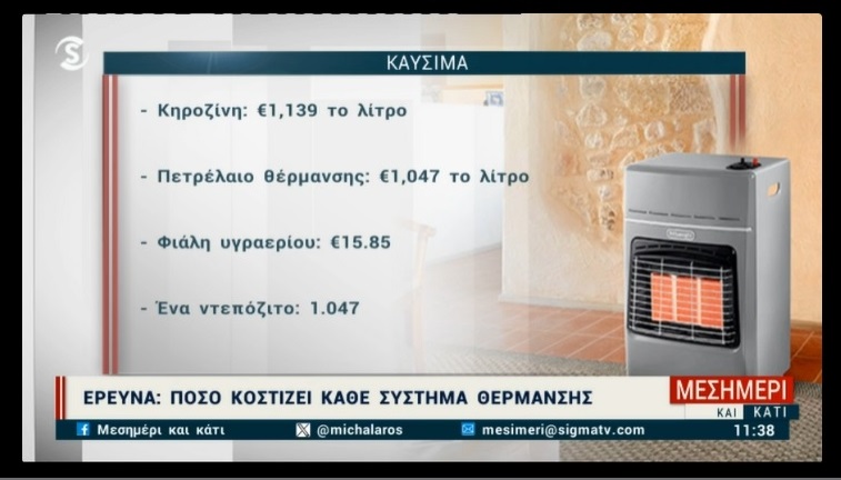 Τους τρεις τρόπους θέρμανσης με τους οποίους μπορούμε να ζεσταθούμε τις κρύες μέρες του χειμώνα αλλά και το κόστος που έχει ο κάθε ένας από αυτούς παρουσίασε η εκπομπή Μεσημέρι και Κάτι στο Σίγμα.