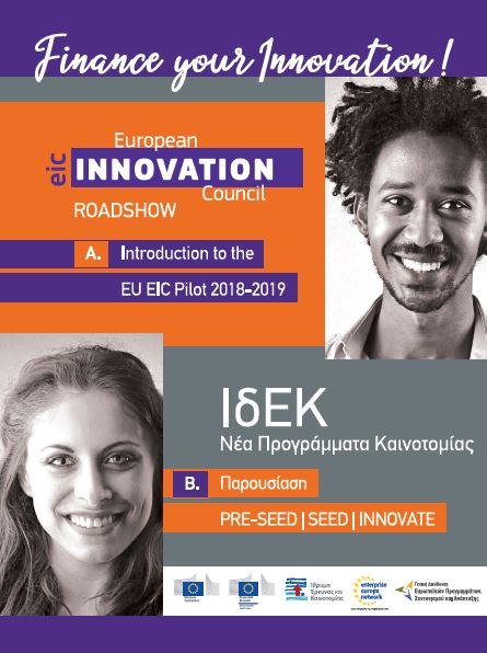 Στο πρώτο μέρος της ημερίδας θα γίνει η παρουσίαση των νέων Προσκλήσεων του European Innovation Council - EIC στο πλαίσιο του Προγράμματος «Ορίζοντας 2020». Συγκεκριμένα, εκπρόσωποι της ΕΕ θα παρουσιάσουν τη μετεξέλιξη των χρηματοδοτικών εργαλείων που παρέχονται σε καινοτόμες μικρομεσαίες επιχειρήσεις μέσω του European Innovation Council. Σε αυτή την ενότητα θα πραγματοποιηθεί επίσης, συζήτηση αναφορικά με τις ανάγκες των μικρομεσαίων επιχειρήσεων και τον τρόπο αξιοποίησης των νέων εργαλείων Pathfinder και Accelerator του EIC.