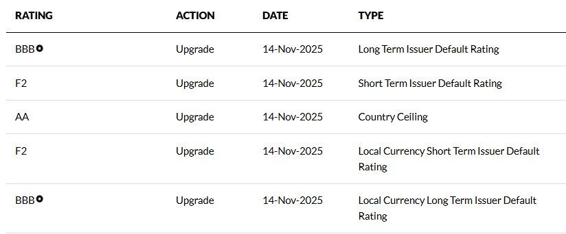 Η Fitch έχει αναβαθμίσει τις αξιολογήσεις των τεσσάρων συστημικών τραπεζών σε επενδυτική βαθμίδα κατά τη διάρκεια του 2025, αντανακλώντας τη βελτίωση του εγχώριου λειτουργικού περιβάλλοντος και των πιστοληπτικών προφίλ των τραπεζών, συμπεριλαμβανομένου ενός μακρύτερου ιστορικού υγιούς κερδοφορίας, της ολοκλήρωσης του μεγαλύτερου μέρους της εξυγίανσης των μη εξυπηρετούμενων ανοιγμάτων, της ενισχυμένης κεφαλαιακής επάρκειας και της σταθερής χρηματοδότησης από καταθέσεις.