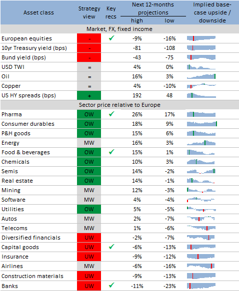 Παρότι το μακροπρόθεσμο περιβάλλον για την Ευρώπη δείχνει να βελτιώνεται, η BofA δηλώνει ότι διατηρεί τις επιφυλάξεις της για τη βραχυπρόθεσμη πορεία της ευρωπαϊκής αγοράς. Η πρόσφατη άνοδος έχει φέρει τις τιμές των ευρωπαϊκών μετοχών σε επίπεδα που προεξοφλούν ισχυρή παγκόσμια ανάπτυξη, αλλά αναμένει επιβράδυνση της παγκόσμιας δυναμικής τους επόμενους μήνες, κάτι που μπορεί να φέρει διόρθωση άνω του 10% για τον Stoxx 600 από τα τρέχοντα επίπεδα.