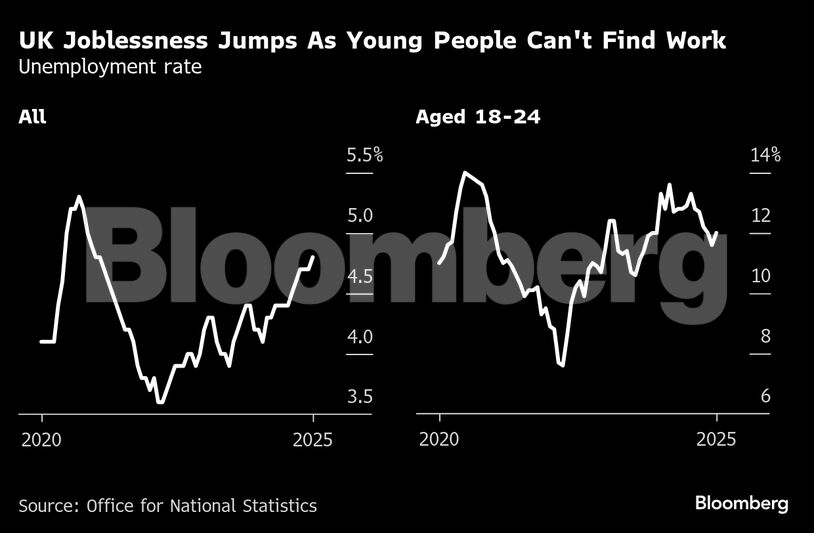Η ανεργία στο Ηνωμένο Βασίλειο αυξήθηκε απροσδόκητα, ενώ η άνοδος των μισθών επιβραδύνθηκε περισσότερο από τις προβλέψεις, σύμφωνα με τα στοιχεία που δημοσίευσε την Τρίτη η Εθνική Στατιστική Υπηρεσία (ONS). Οι εξελίξεις αυτές οδήγησαν τους επενδυτές να ενισχύσουν τα στοιχήματά τους για νέες μειώσεις επιτοκίων από την Τράπεζα της Αγγλίας.