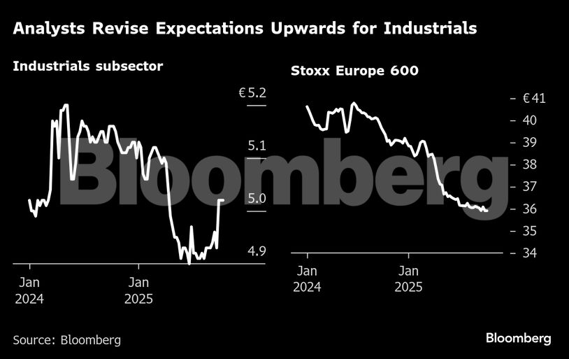 Η βιομηχανία είναι ένας από τους μόλις δύο κλάδους στην Ευρώπη -μαζί με τον χρηματοοικονομικό τομέα– που έχουν δει ανοδικές αναθεωρήσεις κερδών το τελευταίο διάστημα. Αντίθετα, οι προσδοκίες για τον Stoxx Europe 600 μειώνονται συνολικά, καθώς οι επενδυτές προετοιμάζονται για πιο «χλιαρή» περίοδο αποτελεσμάτων.