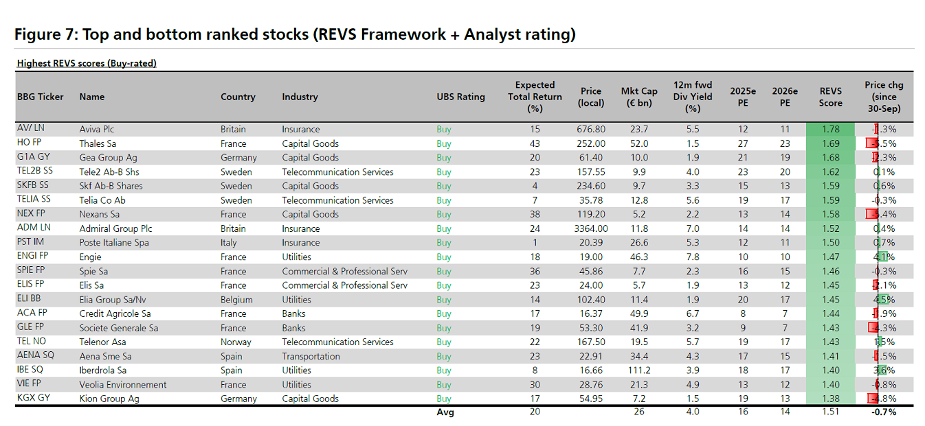 Οι τομείς που προτιμά η UBS είναι οι ενεργειακές επιχειρήσεις και εταιρείες κοινής ωφέλειας (ιδίως οι ανανεώσιμες πηγές ενέργειας), οι τηλεπικοινωνίες, οι χρηματοοικονομικές εταιρείες και τράπεζες, τα μεταλλεία και τα δομικά υλικά. Αντίθετα, οι ημιαγωγοί, τα χημικά προϊόντα και τα είδη προσωπικής φροντίδας παραμένουν λιγότερο ελκυστικοί, λόγω ασθενέστερης ζήτησης και επιπτώσεων από τις συναλλαγματικές ισοτιμίες.