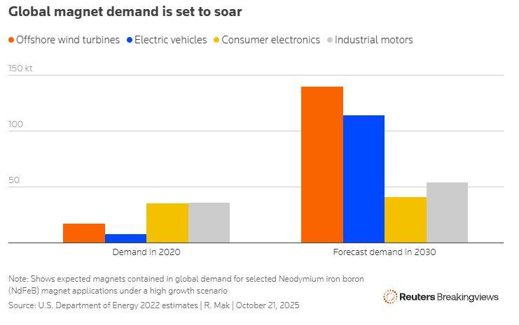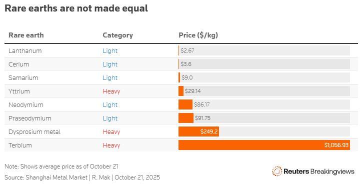Η επείγουσα ανάγκη απελευθέρωσης από την κυριαρχία της Κίνας θα αυξηθεί. Νωρίτερα αυτόν τον μήνα, το Πεκίνο αποκάλυψε σαρωτικούς ελέγχους εξαγωγών που θα παραχωρήσουν στις κινεζικές αρχές εξωεδαφικό έλεγχο σε ορισμένα κρίσιμα ορυκτά, συμπεριλαμβανομένων 12 τύπων σπάνιων γαιών, τα περισσότερα από τα οποία είναι βαριά, καθώς και σχετική τεχνολογία παραγωγής και εξοπλισμό που καλύπτει την επεξεργασία, την ανακύκλωση, την κατασκευή μαγνητών και άλλα.