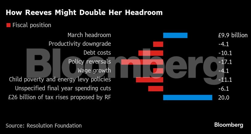 Η εξέλιξη αυτή οφείλεται κυρίως στην ισχυρότερη από το αναμενόμενο αύξηση των μισθών, που αντιστάθμισε τη μείωση της παραγωγικότητας. Η Resolution προτείνει στη Ριβς να διπλασιάσει το δημοσιονομικό “μαξιλάρι” στα 20 δισ. λίρες, ώστε να περιοριστεί η αβεβαιότητα που συνοδεύει τη νέα κυβέρνηση των Εργατικών.