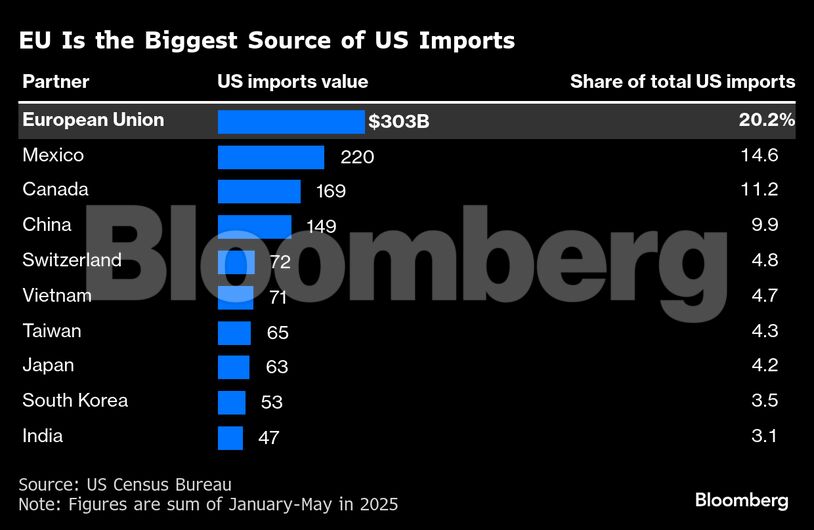 Το ανώτατο όριο του 15% ισχύει επίσης για τα αυτοκίνητα και η ΕΕ επιθυμεί να διασφαλίσει ότι θα καλύπτει και άλλους κλάδους που ενδέχεται να επιβαρυνθούν με τομεακούς δασμούς στο μέλλον. Στο πλαίσιο της συμφωνίας, ένας μικρός αριθμός προϊόντων της ΕΕ επωφελείται από χαμηλότερους συντελεστές, ενώ η Ένωση έχει υποβάλει νομοθεσία για την κατάργηση των δασμών σε βιομηχανικά προϊόντα των ΗΠΑ και ορισμένες μη ευαίσθητες γεωργικές εξαγωγές.
