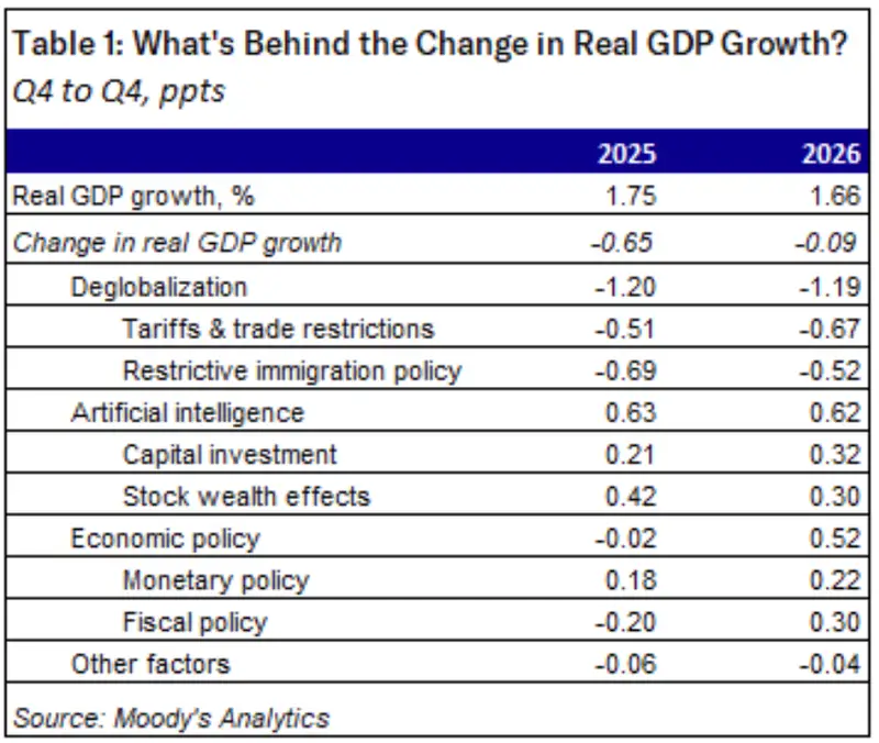 «Η απο-παγκοσμιοποίηση θα παραμείνει σημαντικό εμπόδιο το 2026, μειώνοντας την πραγματική αύξηση του ΑΕΠ κατά 1,19 ποσοστιαίες μονάδες», προσέθεσε ο αναλυτής στο Βusiness Insider.
