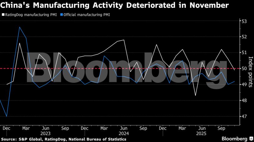 Η κινεζική μεταποίηση επέστρεψε σε αρνητικό έδαφος τον Νοέμβριο παρά τη βελτίωση της ζήτησης από το εξωτερικό μετά την πρόσφατη εμπορική εκεχειρία με τις ΗΠΑ.