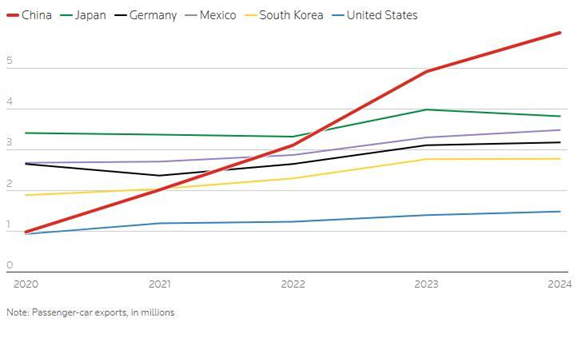 Η Κίνα έχει ξεπεράσει όλες τις άλλες μεγάλες χώρες εξαγωγής αυτοκινήτων από το 2020.