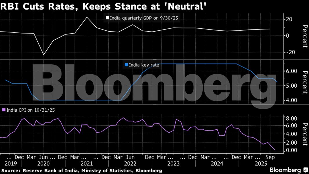 Η εξαμελής επιτροπή νομισματικής πολιτικής της Reserve Bank of India, υπό την ηγεσία του διοικητή Σαντζέι Μαλχότρα, αποφάσισε ομόφωνα την Παρασκευή τη μείωση του βασικού επιτοκίου κατά 25 μονάδες βάσης, στο 5,25%. Η κατεύθυνση της πολιτικής παρέμεινε ουδέτερη.
