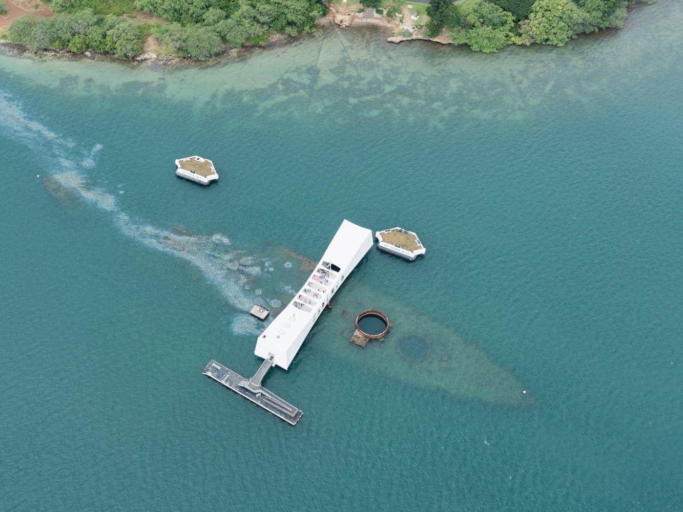 Το μνημείο πάνω από το βυθισμένο κουφάρι του θωρηκτού Arizona