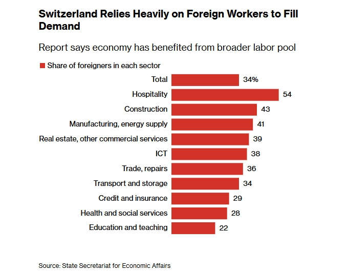 Οι δημοσκοπήσεις δείχνουν ότι υπάρχει πιθανότητα να εγκρίνουν την πρόταση οι Ελβετοι πολίτες αλλά ο κίνδυνος είναι ότι αυτό θα μπορούσε να οδηγήσει σε έλλειψη κρίσιμων δεξιοτήτων, που τελικά θα βλάψει την ανταγωνιστικότητα της Ελβετίας, σχολιάζει το Bloomberg.