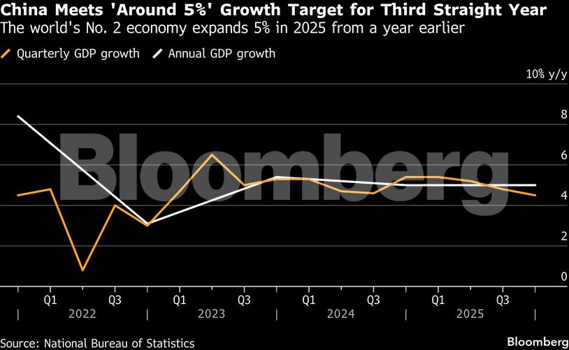 Η οικονομία της Κίνας έχασε περαιτέρω δυναμική το τελευταίο τρίμηνο, παρόλο που πέτυχε τον στόχο της κυβέρνησης για το 2025, σε ένα ακόμη έτος άνισης ανάπτυξης που θα είναι δύσκολο να διατηρηθεί σε μια περίοδο προστατευτισμού σε όλο τον κόσμο.