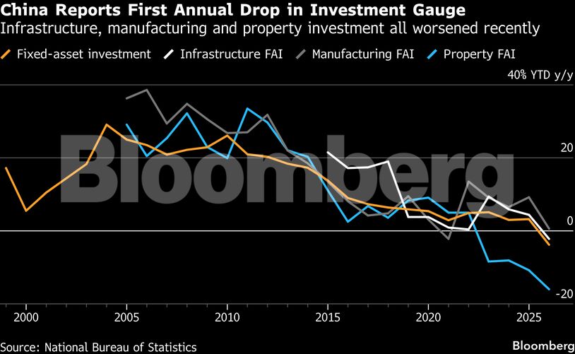 Η εγχώρια ζήτηση ήταν υποτονική πέρυσι, ειδικά αν εξαιρέσουμε τις επιπτώσεις των επιδοτήσεων της κυβέρνησης ύψους 300 δισεκατομμυρίων γουάν (43 δισεκατομμύρια δολάρια) για την αγορά καταναλωτικών αγαθών από τα νοικοκυριά. Οι επενδύσεις συρρικνώθηκαν τον Δεκέμβριο με τον ταχύτερο ρυθμό που παρατηρήθηκε πέρυσι, παρά τα μέτρια μέτρα τόνωσης που προστέθηκαν στα τέλη του 2025, σύμφωνα με την Ζακλίν Ρονγκ, επικεφαλής οικονομολόγο της BNP Paribas SA για την Κίνα.