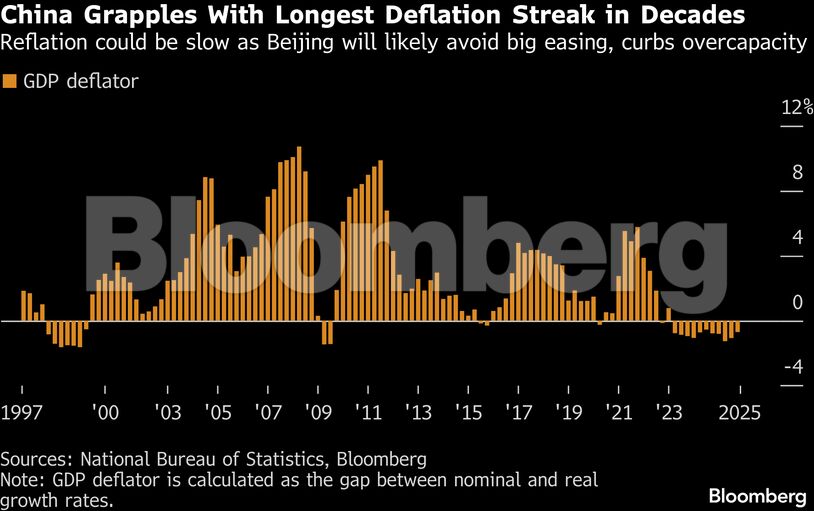 Ο αποπληθωρισμός διαρκεί πλέον τρία συνεχόμενα χρόνια, ένα σερί ρεκόρ από τότε που η Κίνα άρχισε τη μετάβαση της οικονομίας της στα τέλη της δεκαετίας του 1970. Εκτός από την Ιαπωνία, καμία άλλη μεγάλη οικονομία δεν έχει βιώσει τόσο παρατεταμένη πτώση των τιμών από το τέλος του Β’ Παγκοσμίου Πολέμου.