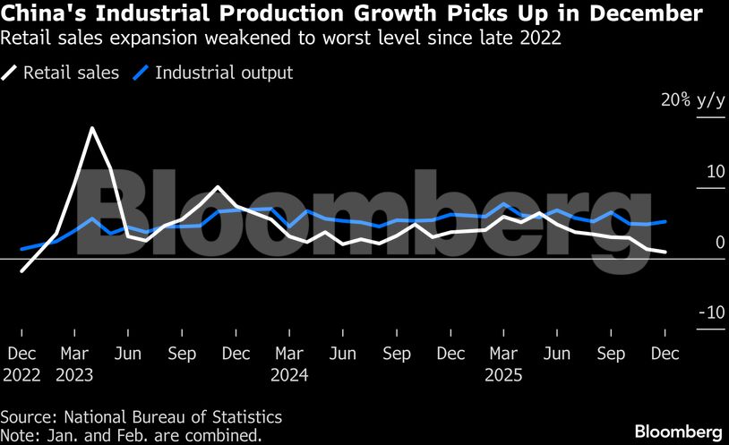Σύμφωνα με τους αναλυτές του Bloomberg, «τα τελευταία στοιχεία της Κίνας δείχνουν μια ταχεία επιβράδυνση της εγχώριας ζήτησης στο τέλος του έτους — μια εξέλιξη που αξίζει περισσότερη προσοχή από την επίτευξη του ετήσιου στόχου οικονομικής ανάπτυξης. Η παραγωγή διατηρήθηκε σταθερή, αντανακλώντας πιθανώς την ανθεκτικότητα των εξαγωγών. Αντίθετα, η αδυναμία της εγχώριας ζήτησης είναι έντονη, με την κατανάλωση να επιβραδύνεται περαιτέρω και τις επενδύσεις να συρρικνώνονται πιο απότομα».