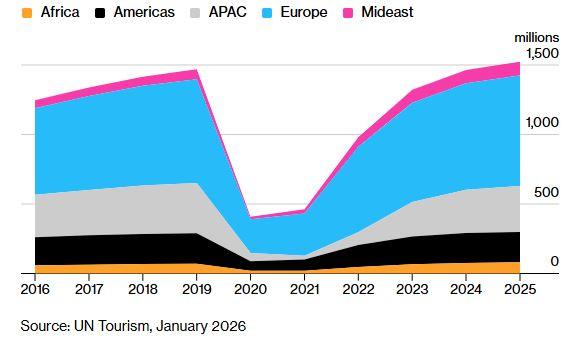 Ο κόσμος σημείωσε ρεκόρ αφίξεων τουριστών το 2025 – Οι επισκέπτες στην Ευρώπη, την Αφρική και τη Μέση Ανατολή ξεπερνούν πλέον τα προ πανδημίας επίπεδα.