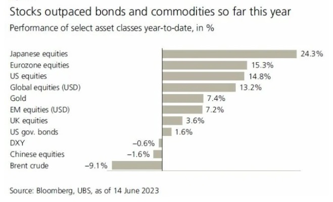 Η Ιαπωνία είχε καιρό να πρωταγωνιστήσει στις αγορές. Το 2023 ωστόσο είναι αναμφίβολα η χρονιά των ιαπωνικών μετοχών που έχουν δώσει απόδοση 24,3% από τις αρχές του έτους. Οι μετοχές τόσο της Ευρωζώνης όσο και των ΗΠΑ έχουν να επιδείξουν κέρδη της τάξης του 15%, ενώ σε παγκόσμιο επίπεδο οι μετοχές έχουν ενισχυθεί πάνω από 13%.