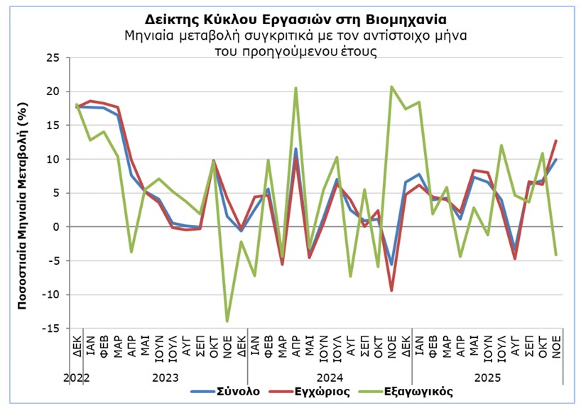 Για την περίοδο Ιανουαρίου – Νοεμβρίου 2025, ο δείκτης παρουσίασε αύξηση 5,1% σε σύγκριση με την αντίστοιχη περίοδο του προηγούμενου έτους.