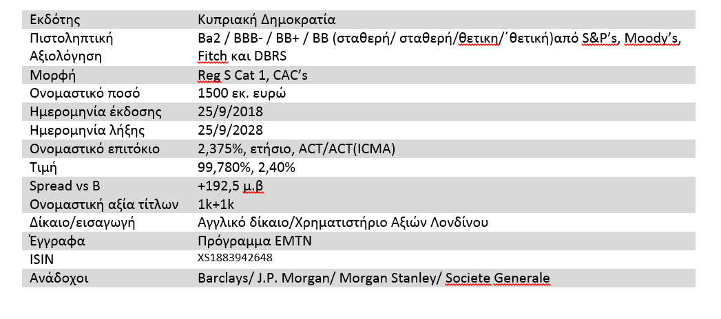 Εξάλλου, σε ανακοίνωσή του το Υπουργείο Οικονομικών αναφέρει ότι τα στοιχεία της έκδοσης έχουν ως εξής: