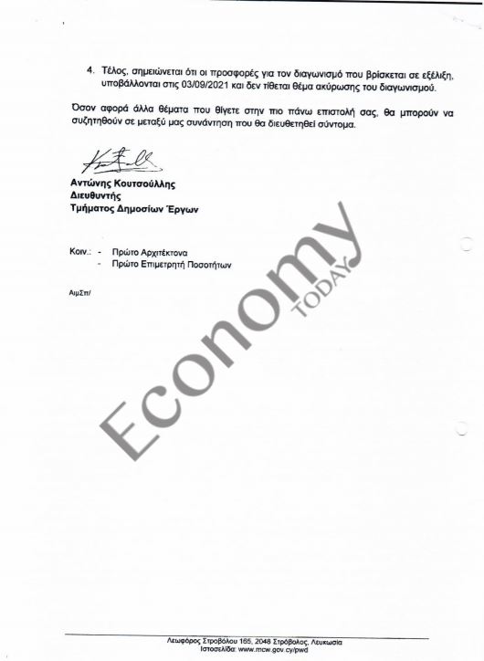 Το Τμ. Δημ. Έργων απάντησε στο ΕΤΕΚ πως, βάσει των δεδομένων που είχε ενώπιόν του, έκρινε πως ο διαγωνισμός "Μελέτη Κατασκευή", είναι ο καταλληλότερος και δεν πρόκειται να ακυρωθεί.