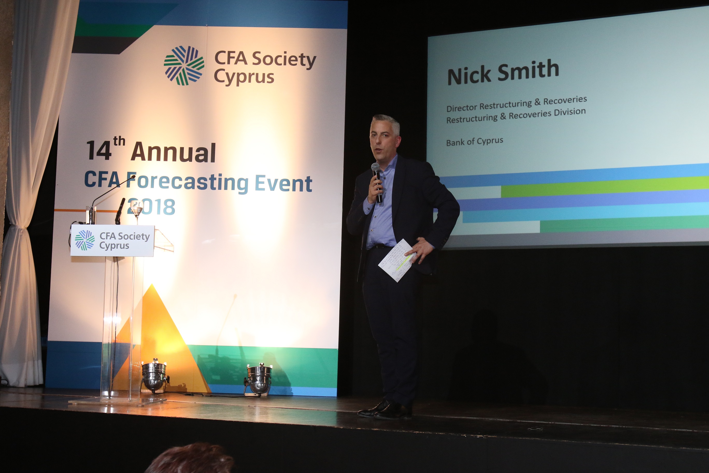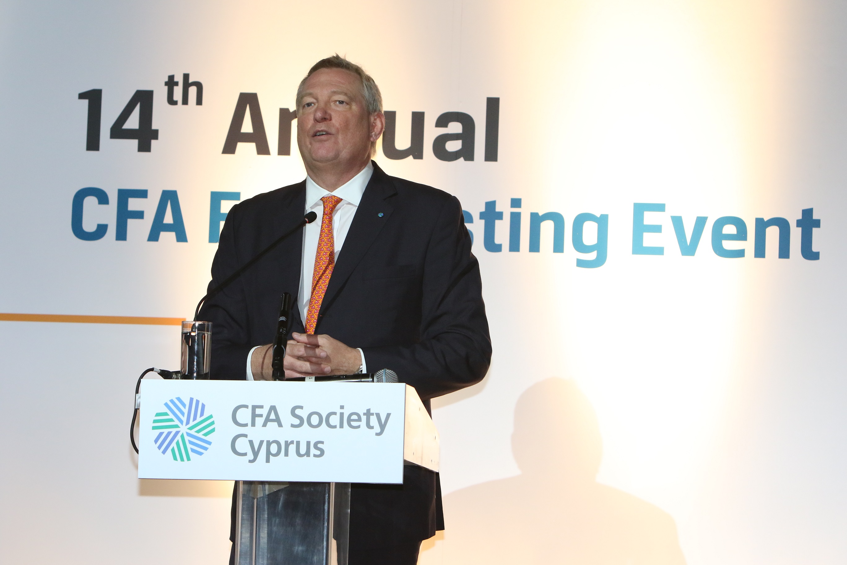 Κάθε χρόνο, το ετήσιο CFA Forecasting Event συγκεντρώνει την χρηματοοικονομική κοινότητα της Κύπρου σε μια συζήτηση για τις τελευταίες διεθνείς και τοπικές οικονομικές προβλέψεις. Φέτος, το CFA Society Cyprus εκπροσωπήθηκε σε κορυφαίο επίπεδο από τον πρόεδρο και Διευθύνοντα Σύμβουλο (CEO) του CFA Institute, Paul Smith, CFA, ο οποίος στην ομιλία του αναφέρθηκε στο μέλλον των Χρηματοοικονομικών και το νέο τοπίο στον επενδυτικό κόσμο. Όπως είπε, ο επενδυτικός κλάδος ανθίζει, καθώς εστιάζει όλο και περισσότερο στις αρχές της εμπιστοσύνης και της ηθικής, που είναι και οι αρχές που προωθεί και στηρίζει το CFA Institute. «Την ίδια ώρα, οι εναλλακτικοί παροχείς και οι τεχνολογίες γεμίζουν το κενό που αφήνει η δυσλειτουργία των κεφαλαιαγορών», πρόσθεσε.